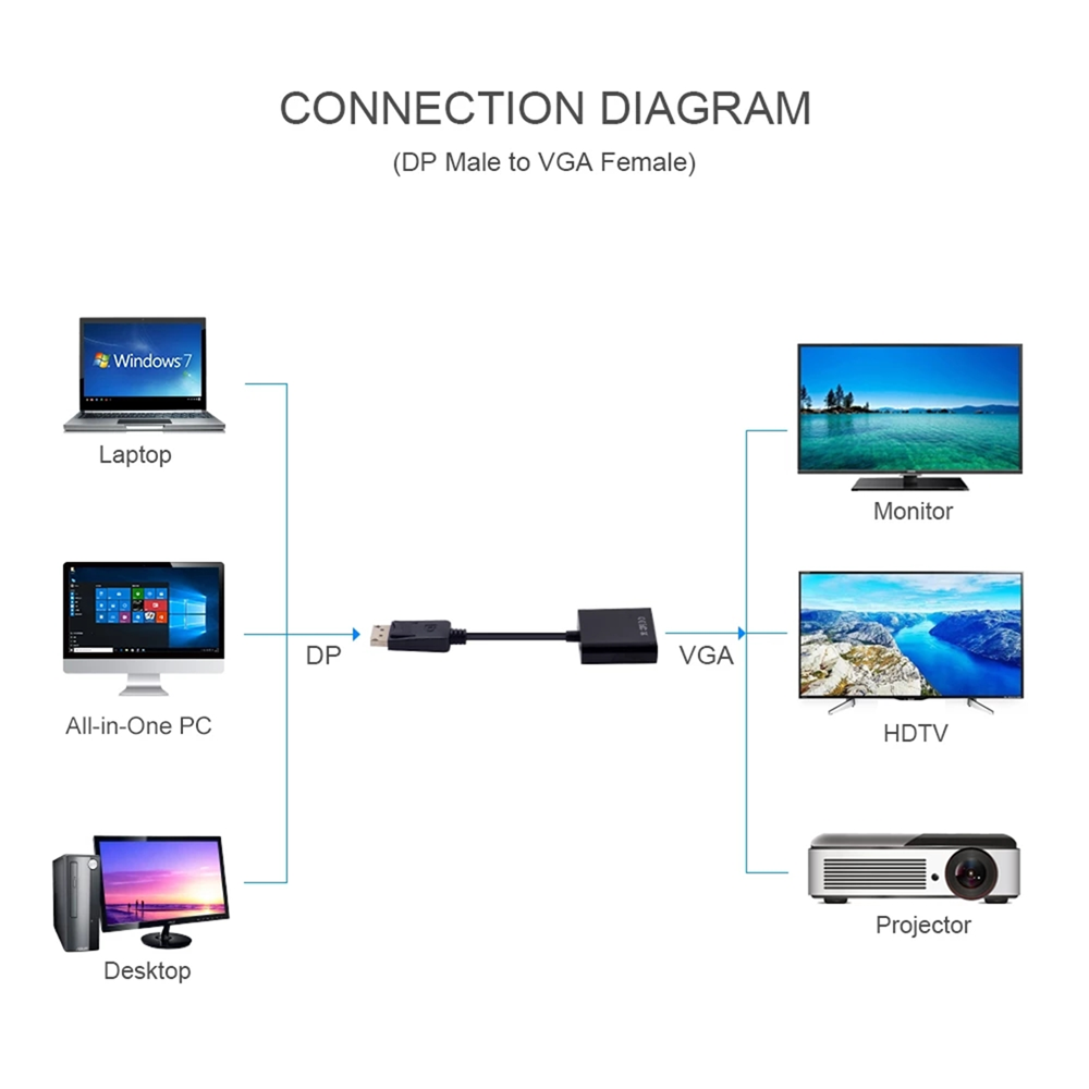 - محول Onten 5118 من DisplayPort إلى VGA (ذكر DP إلى أنثى VGA)