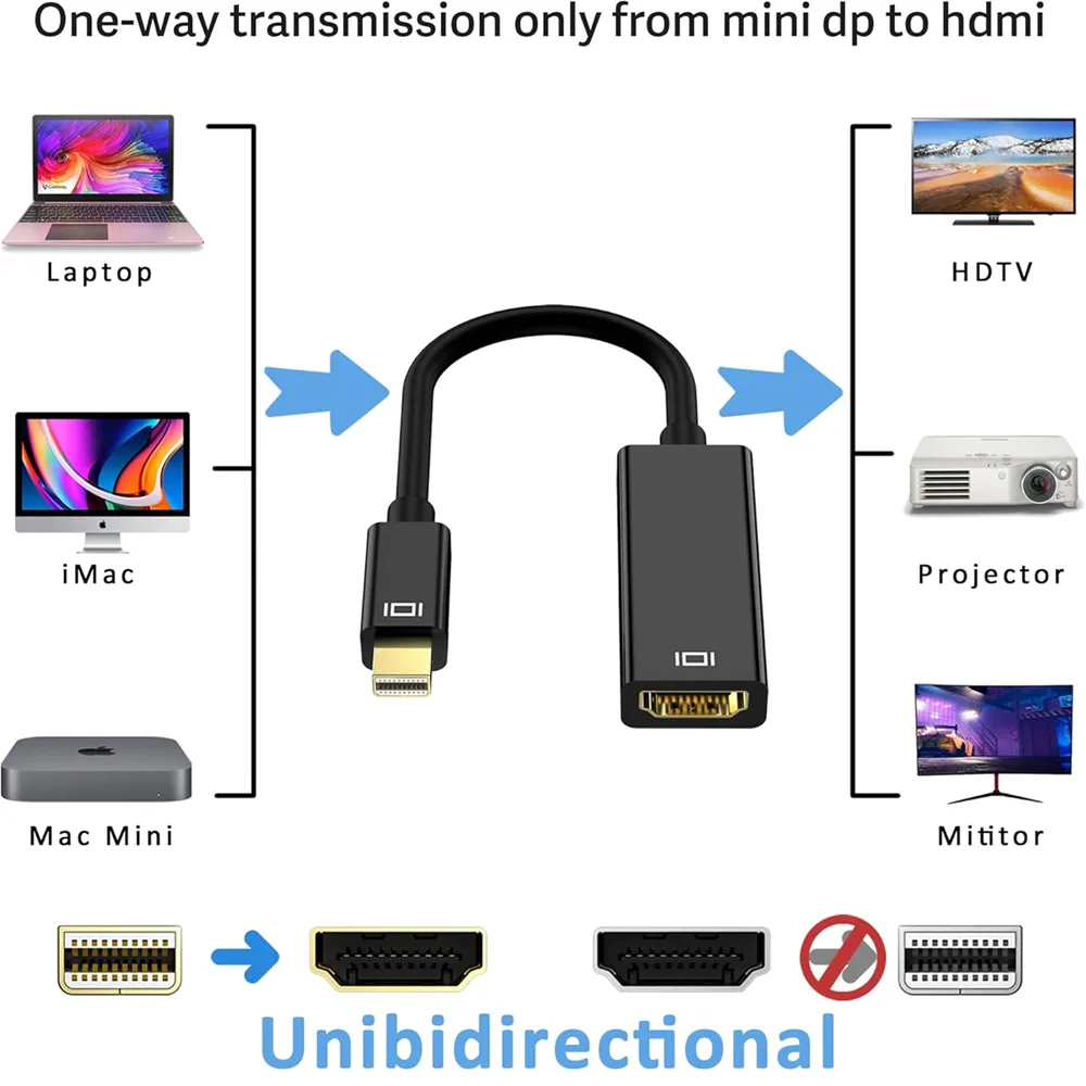 - محول جاسوز (JASOZ G107) من منفذ عرض صغير (Mini DisplayPort) إلى HDMI، ذكر/أنثى، يدعم دقة 4K