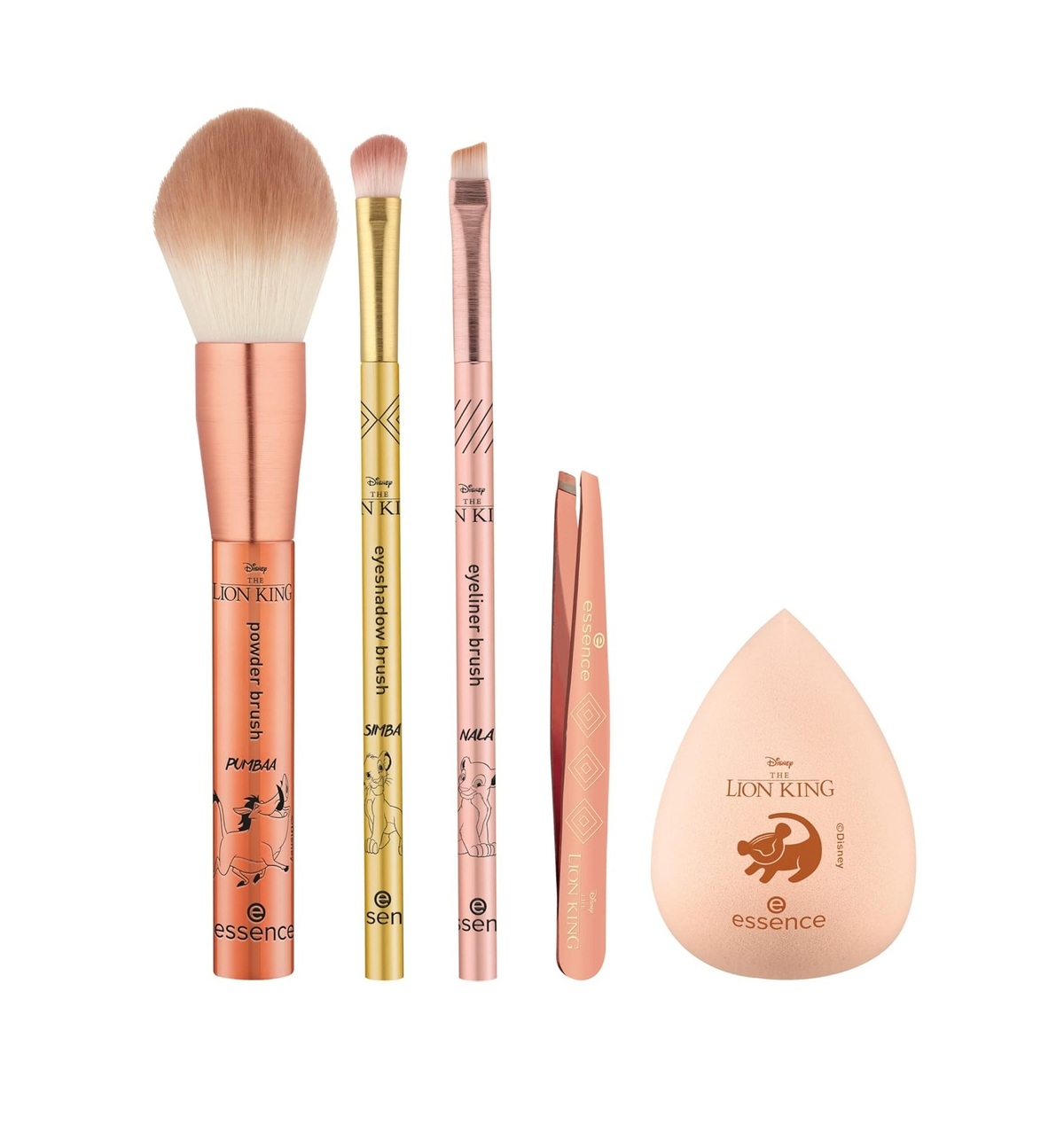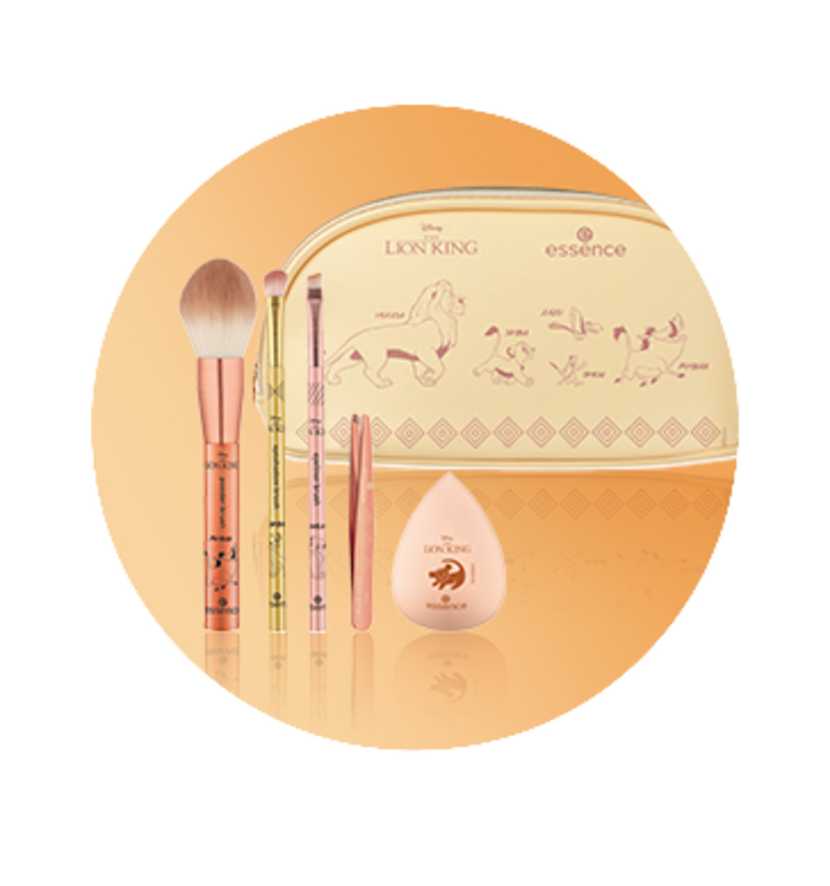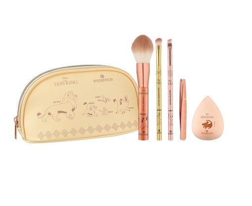 5 tools in one set Cute bag inspired by Disney's The Lion King For perfect looks on the go The essence Disney The Lion King essential tool & bag set is a must-have for every make-up fan. It contains three different brushes for powder textures, eye shadow and eyeliner. You will also find a beauty blender and tweezers in the beauty bag with The Lion King design, which celebrates the magic of friendship.