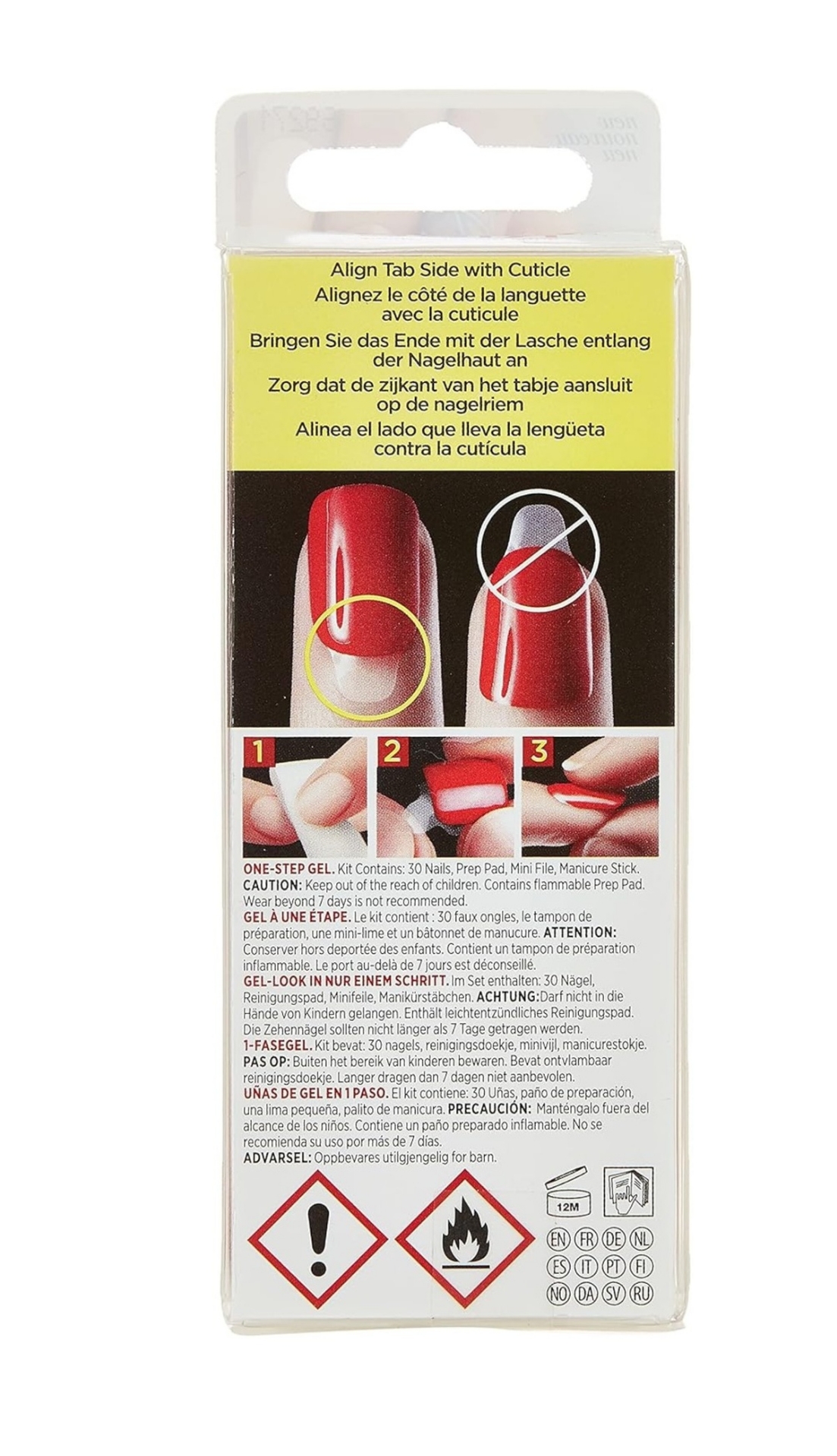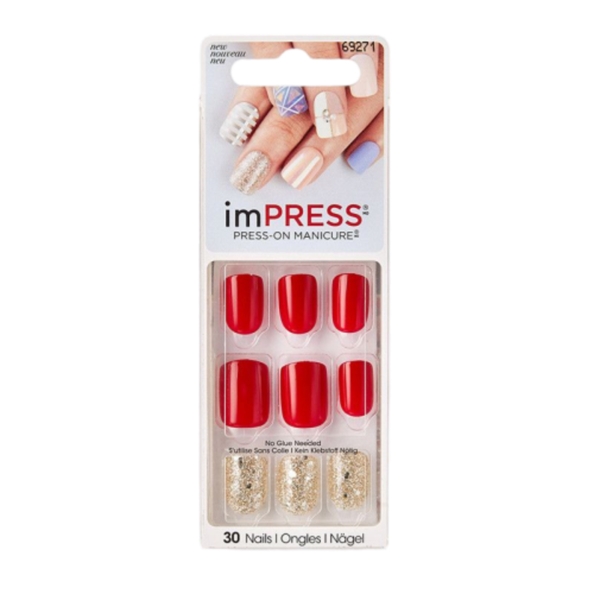 Broadway Impress Gel Nails String Along By Kiss The quick and easy technique to give yourself a manicure in under five minutes without using glue or difficult application. To help you find the perfect fit for your nails, each set includes 30 nails in various sizes. The plastic and flexibility of each nail allow it to adhere to your nails without cracking or bubbling. lasts for up to a week, won't harm your nails, and is simple to take off without soaking. Key Features: Styles May Vary. Glue Free, Chip Proof, No Dry Time! Safe On Natural Nails, With Hassle-Free Removal. 6 additional accent nails to enhance the manicure! Super hold Adhesive Allows Nails To Stay Put And Stay Perfect. Comfortable, secure fit for a seamless natural look Includes 30 nails (6 accent nails), prep pad, file, wood stick How to Use: Use included cuticle stick to push back any excess skin. Size the impress prior to application. The number is indicated on a tab on each nail, 1 is the largest, and 11 is the smallest. When you are in between sizes go smaller, not larger. Align the nail tab side facing the cuticle. The prep pad is the most important step, to clean and remove dirt for better adhesion. Peel the backing from a nail, then press down in the center and press both sides at the same time. If there is exposed adhesive take a clear coat and put it between your nail and the impress and press down.