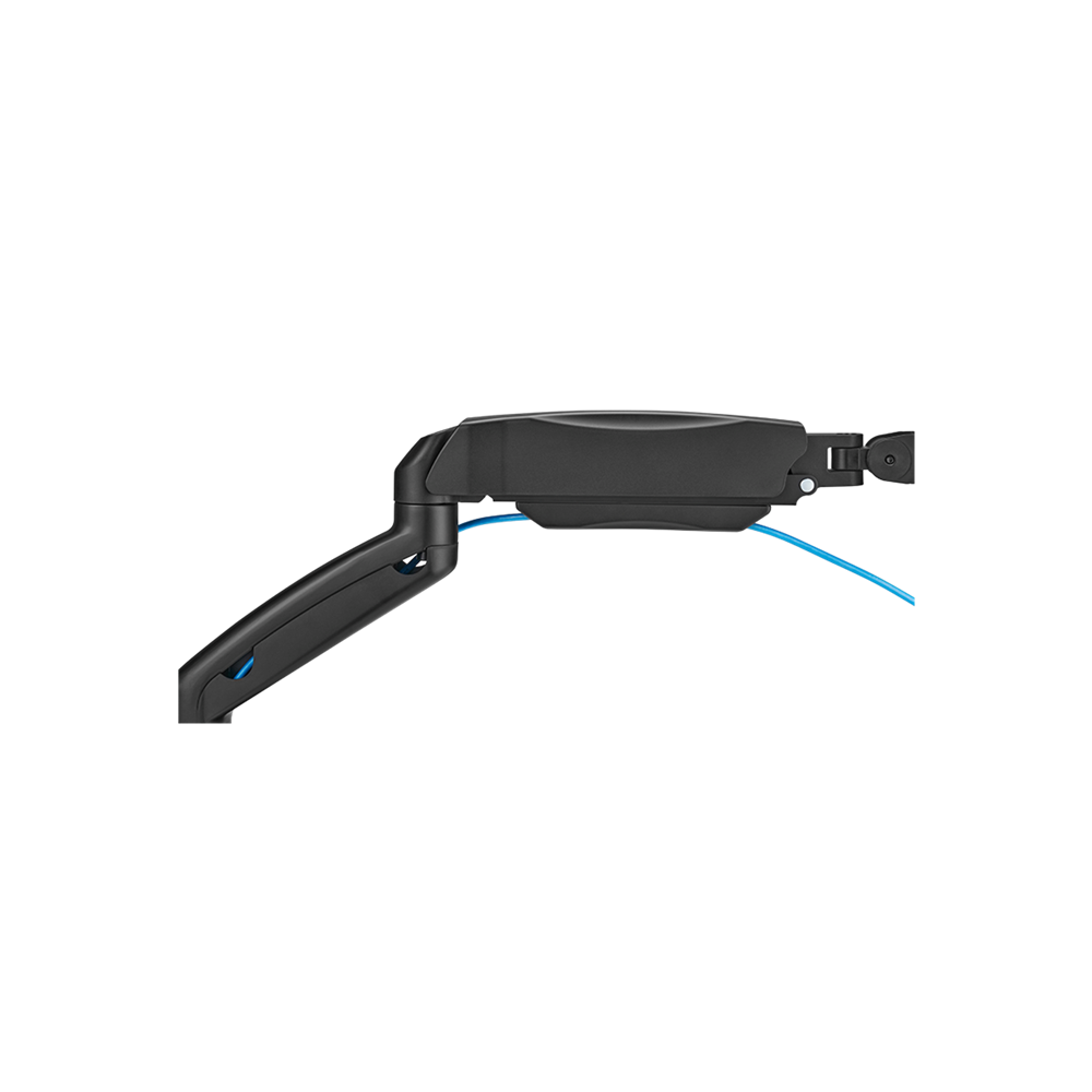 This monitor arm is designed to fit 17″-32″ screens, including curved monitors. It offers a tilt range of +90° to -45°, a swivel range of +90° to -90°, and a screen rotation range of +180° to -180°. With an arm full extension of 450mm (17.7″), you can easily adjust your monitor to the perfect position for maximum comfort and productivity.