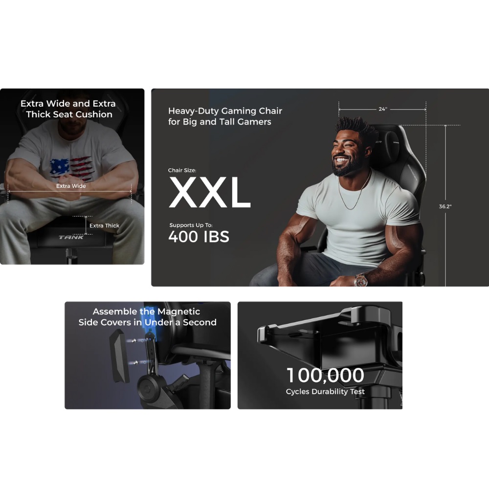 DXRacer Tank XXL 4D Armrest / 180 kg Max. Big and Tall Gaming Chair Extra Large and Wide Seat Upholstery – Woven Fabric Heavy-duty Conventional Tilt Mechanism