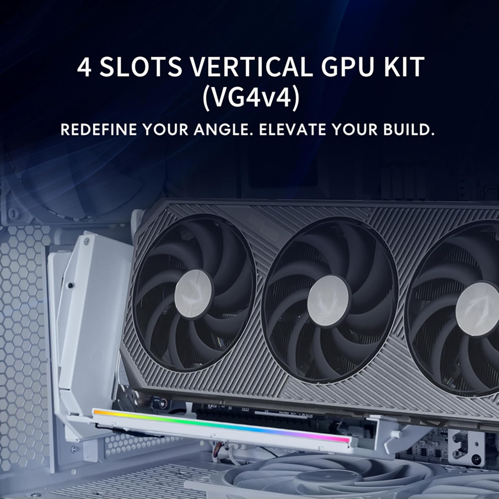 This bracket features an adjustable slot design, supporting up to six slots for vertical installation or seven slots for angled mounting. It accommodates GPUs up to four slots thick, ensuring a perfect and secure fit for even the most high-end graphics cards.